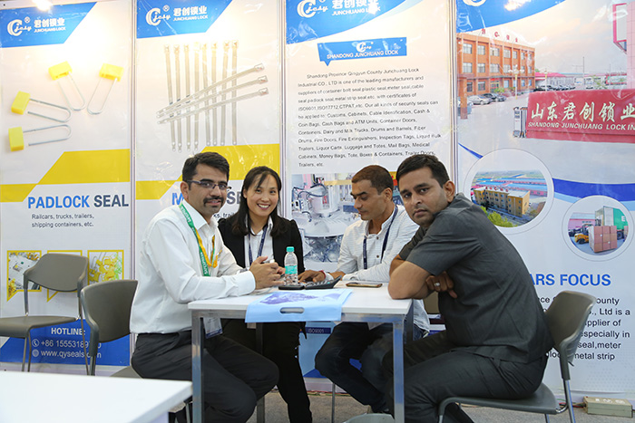 印度作为发展大的仓储、物流市场,仓储物流业务崛起,铅封锁具在印度的发展很有前景。本次展会不止为君创锁业提供了展示制造成果的机会,进一步巩固了君创锁业的品牌与制造实力。同时,也拓宽了公司与各国客户以及同行人士的交流,为今后的合作打下坚实基础。展会现场可以看到,不少国内外客户,对君创锁业的产品和业绩实力给与了认同和赞誉,推动物流仓储的保密防盗服务不断向前发展。