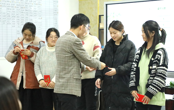 公司会每月为过生日的员工准备生日红包和蛋糕共同庆祝,虽然每次时间不同、参加的人员偶尔有不同,但公司对员工的这份关心和关爱是一样的。由张总为她们颁发生日红包。