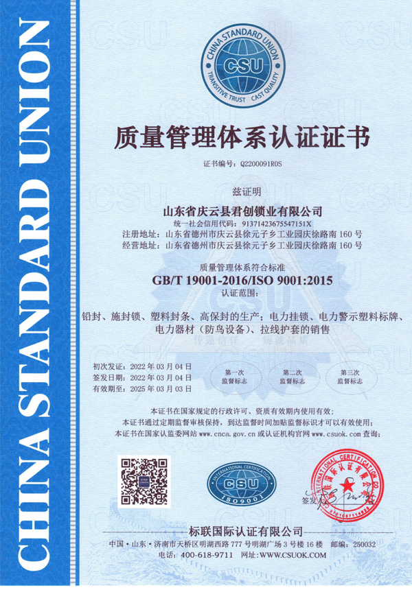 ISO9001认证证书