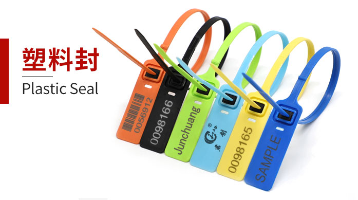 采用改性PP料注塑成型,锁芯里部放置弹簧钢片、再通过焊接而成。字为烫印或激光标刻、 公司标志或名称、流水编码、条形码等,一拉紧型、易施封、易安装,锁后可用钢丝剪移除。